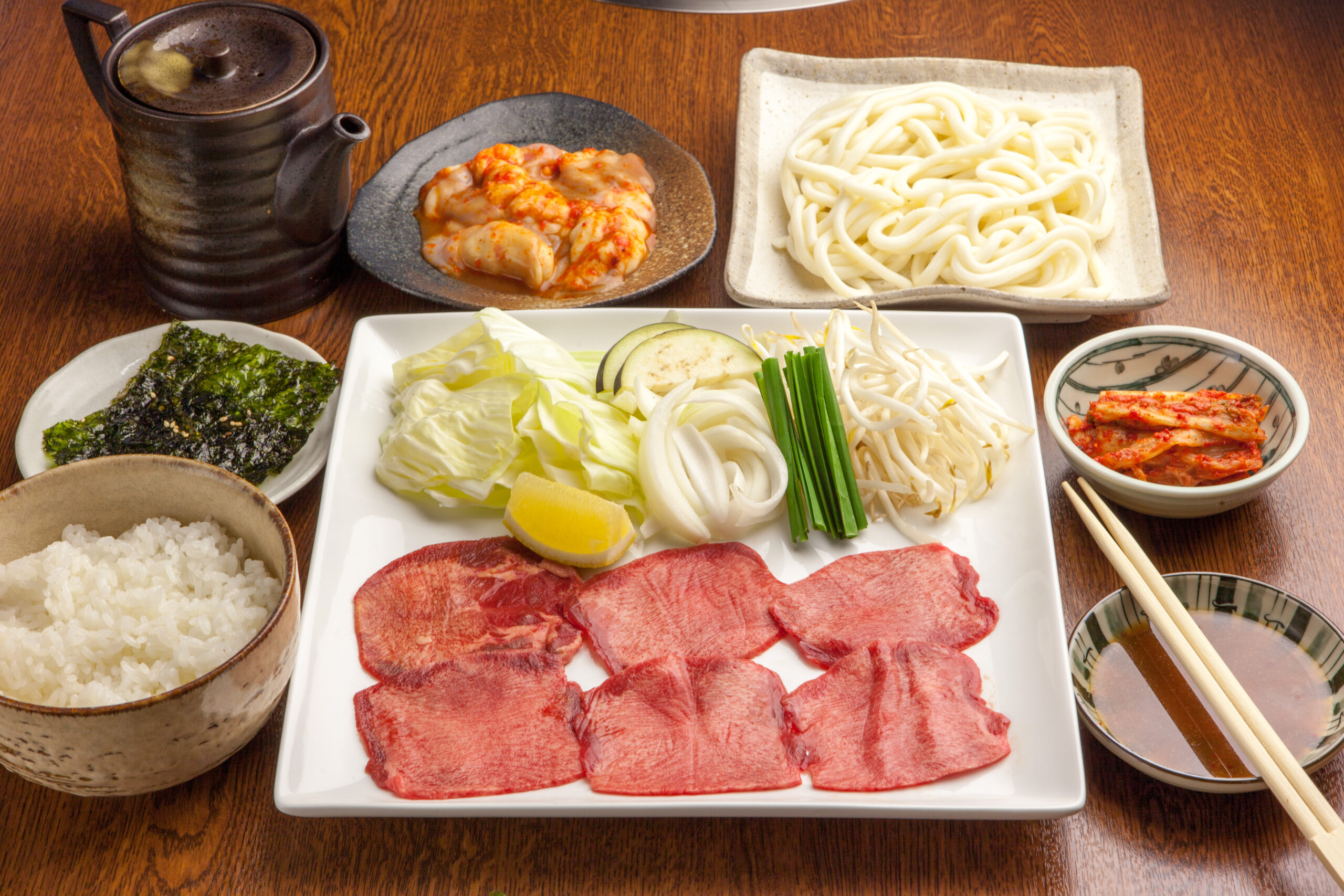 牛タン1人前・ホルモン60g・野菜盛・キムチ・ごはん・〆のホルモンうどん